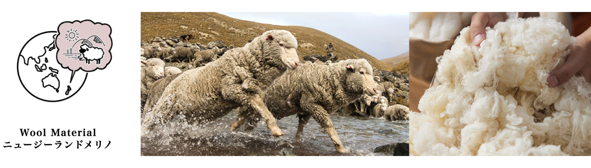 ニュージーランドの自然豊かな環境で、人々の手によって大切に育てられた羊たちが生み出すウールは年に1回、あたたかい春の時期に刈り取られ、厳格な品質検査を経て海を渡ります。