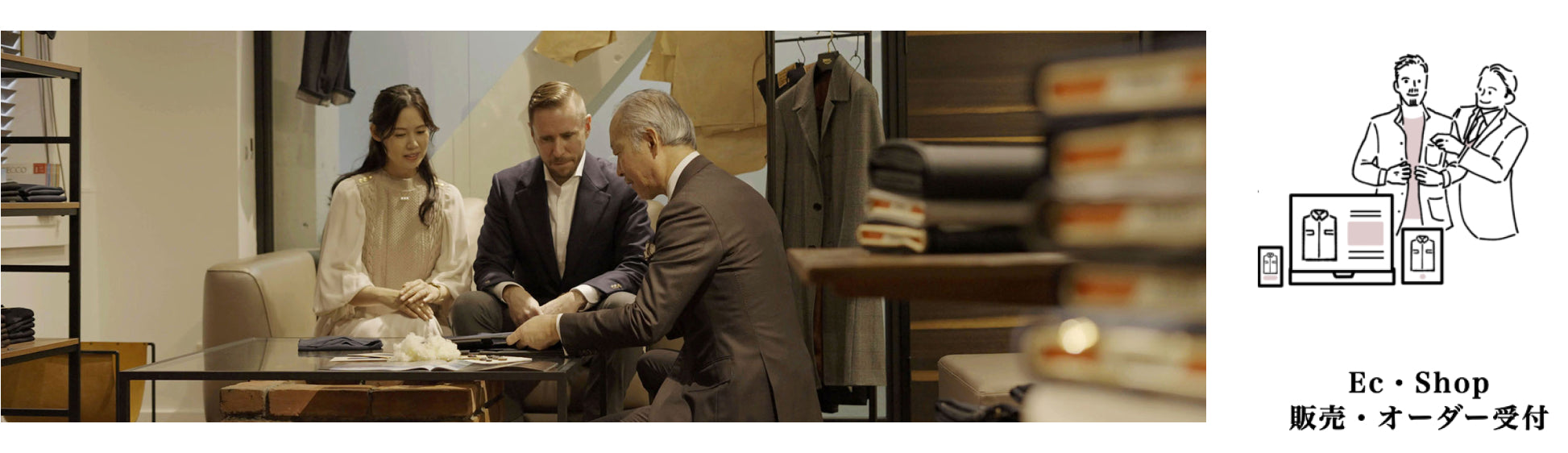 店頭では、永く愛着を持って着ていただきたいという想いを込めて、ご購入後のメンテナンスも含め、お客様にとっての最高の一着をご提案します。