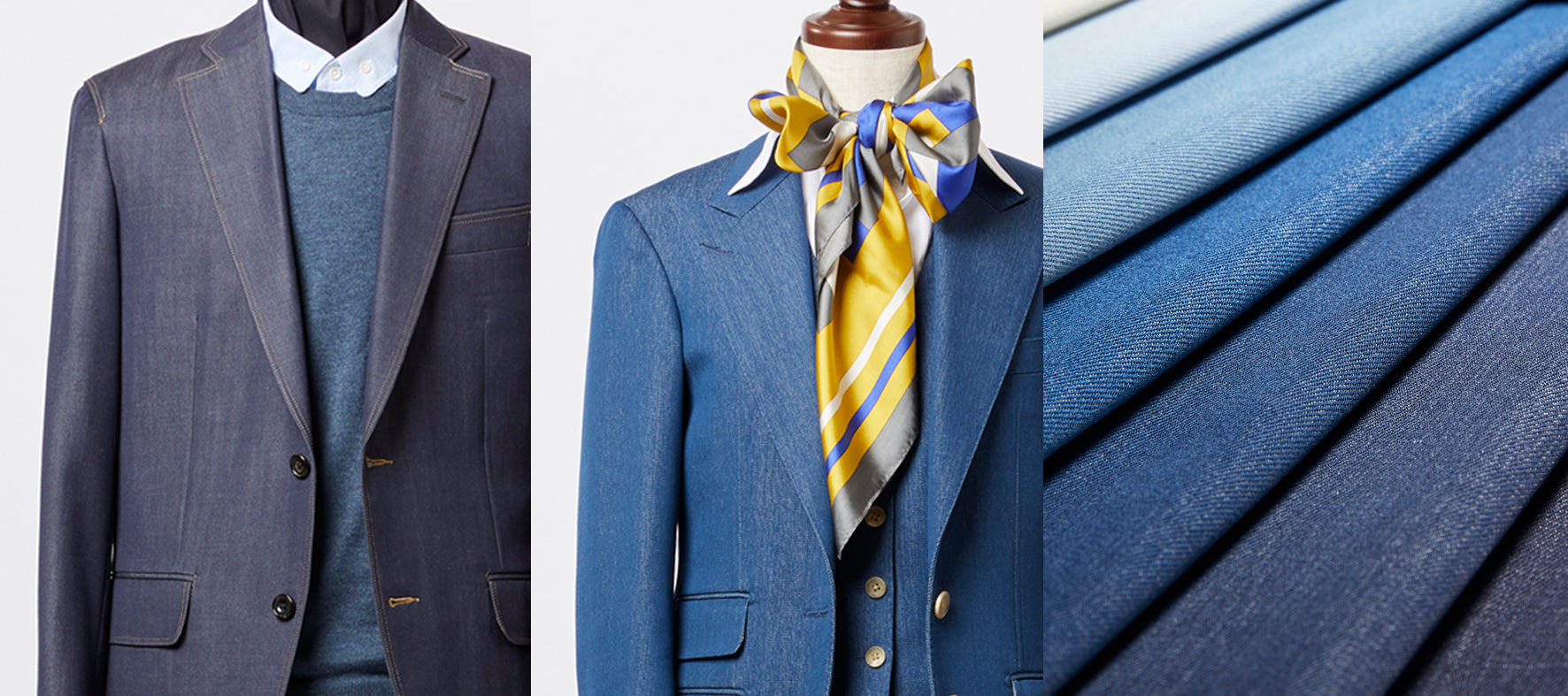 デニムの表情でありながら、ウールならではのしなやかなドレープ感と上品な光沢感が特徴です。上質さとともに、適度に肩の力を抜いたような、カジュアルな雰囲気のアイテムに仕上がるため、オンもオフも幅広く活躍します。上品な大人のライフシーンをサポートしてくれるアイテムです。
