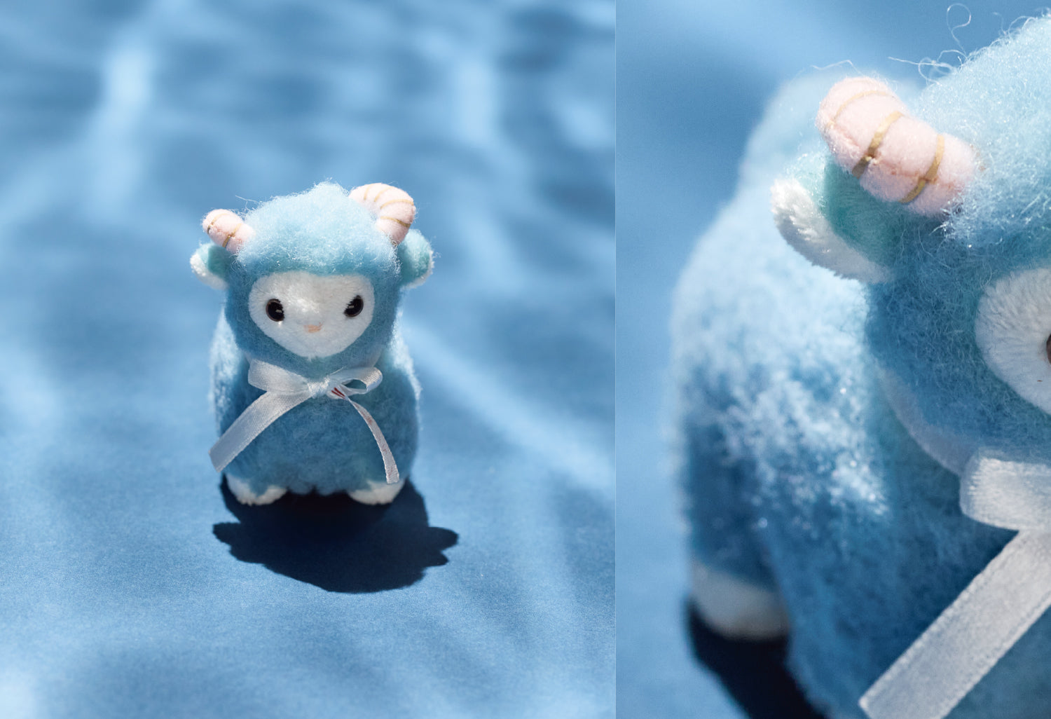 ノベルティ ひつじのぬいぐるみストラップ「藍染う〜るん」