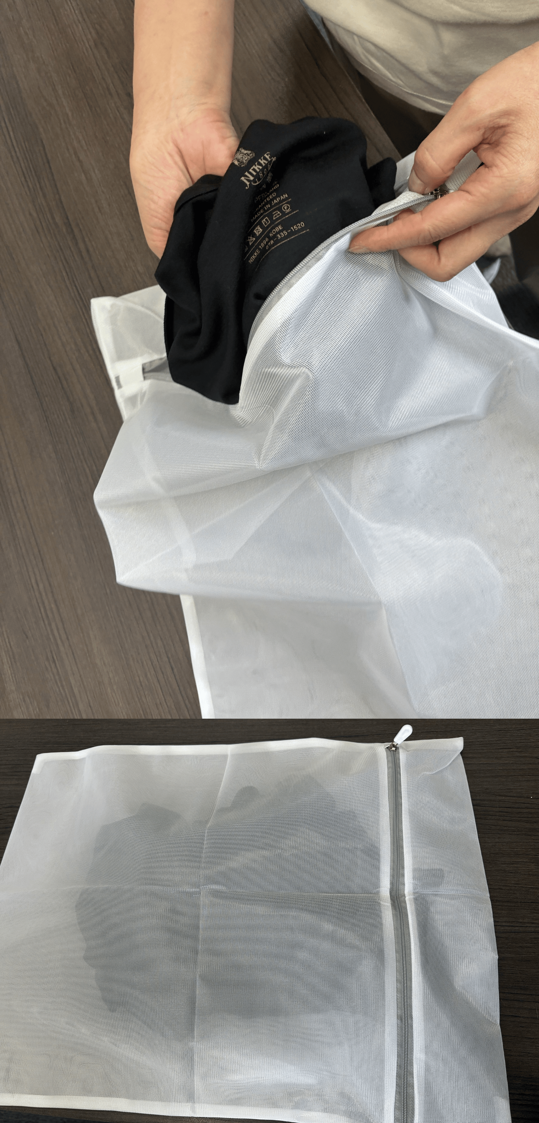 洗濯ネットにはパンパンになるまで洗濯ものを詰めず、動くゆとりを持たせて入れてください。