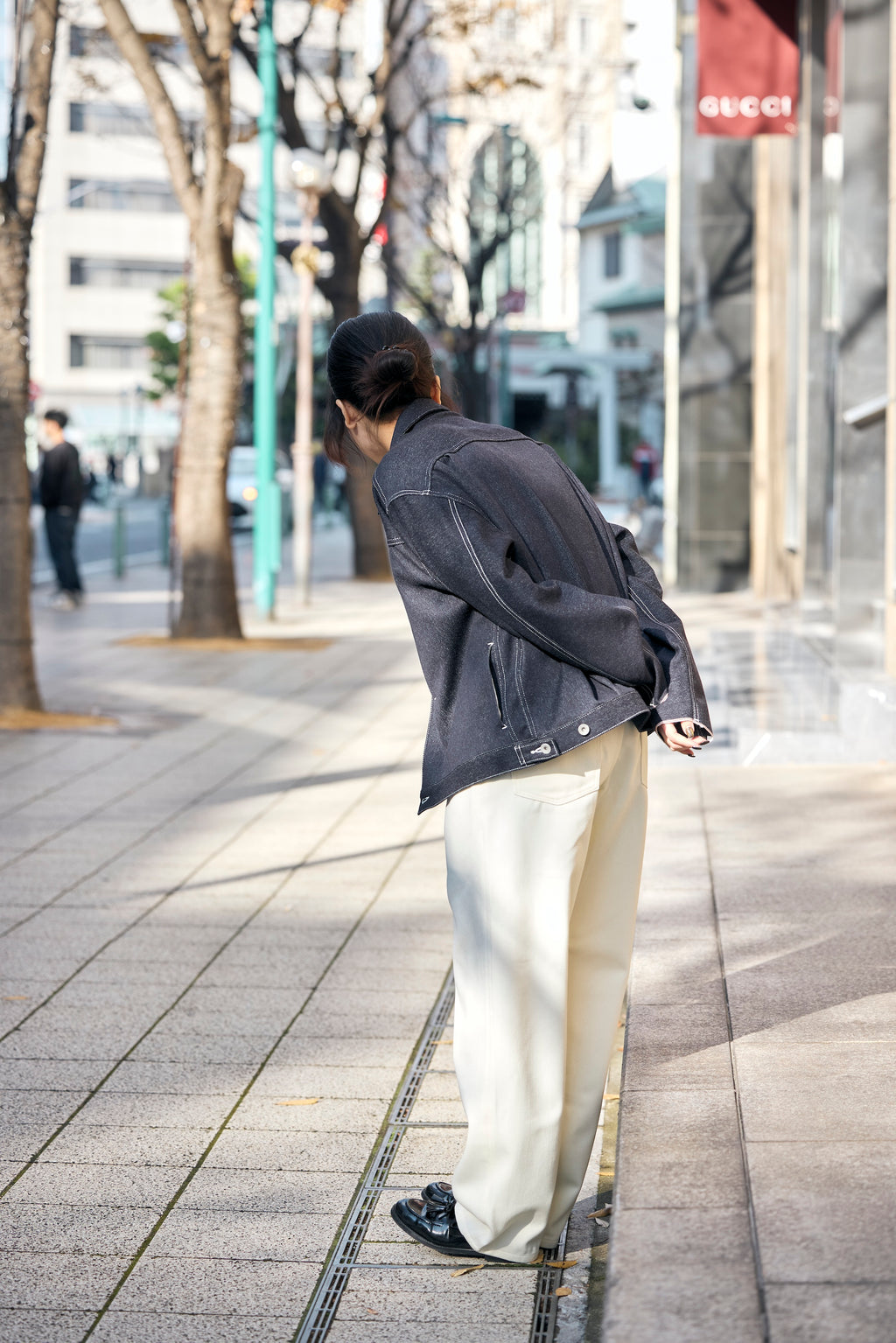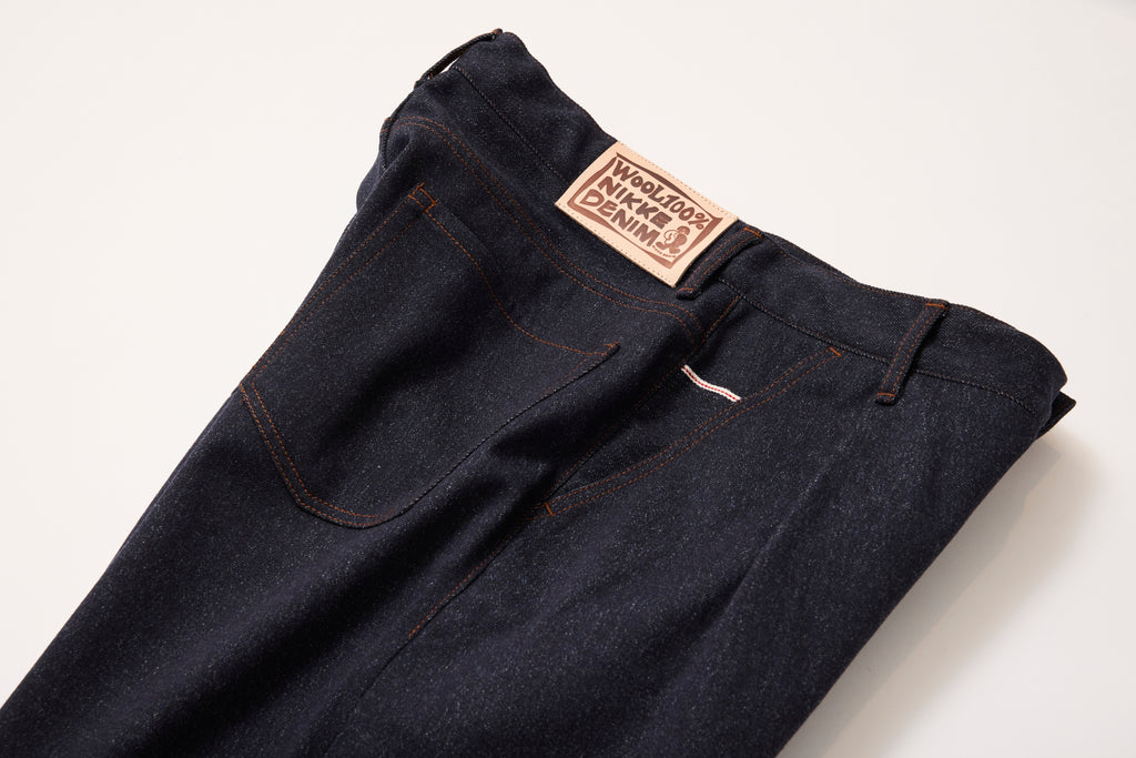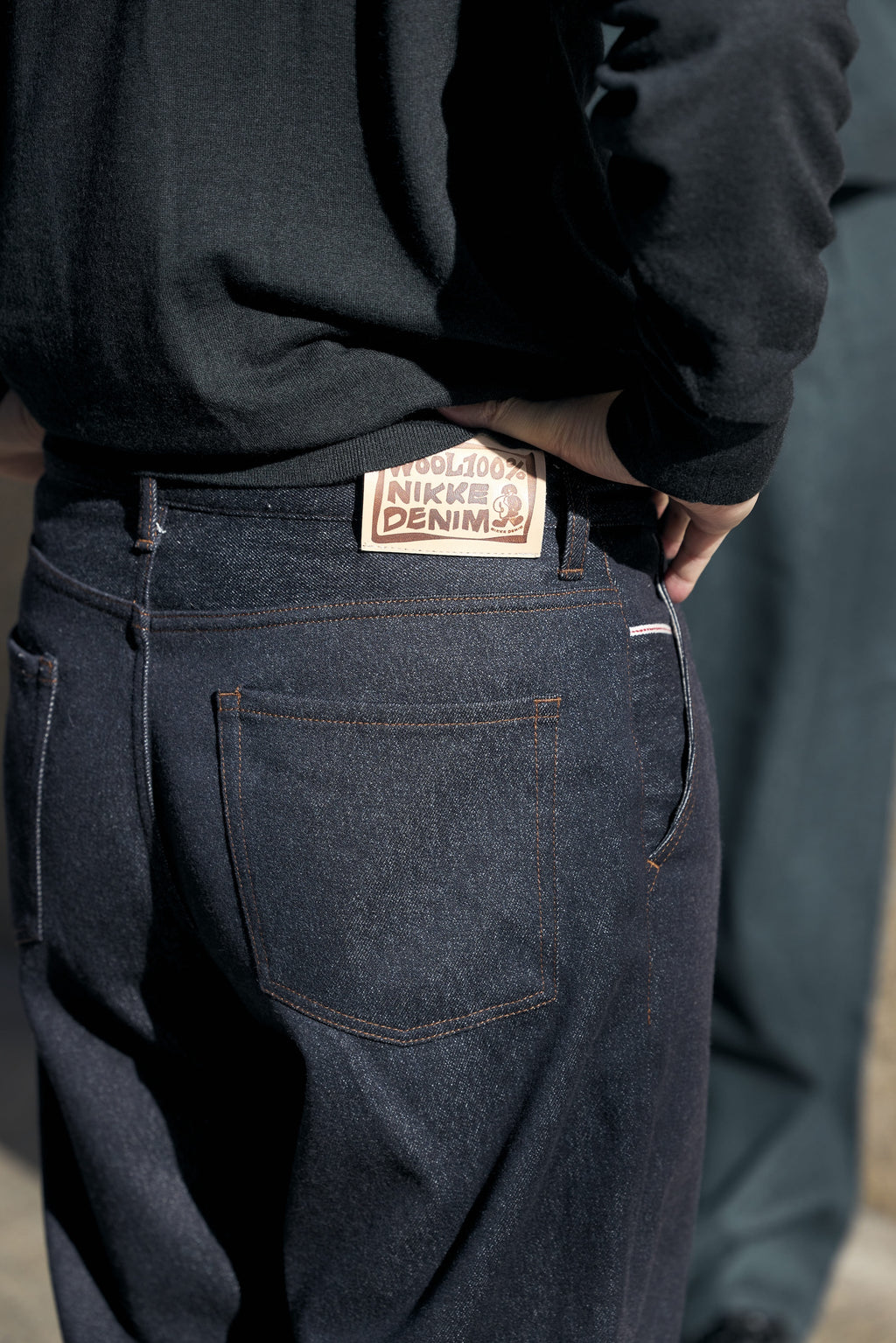 サイズ表:【NEW 冬デニムパンツ】スーパーファインメリノウール100%ワイドワンタックデニムパンツ17.5μ-Super120's